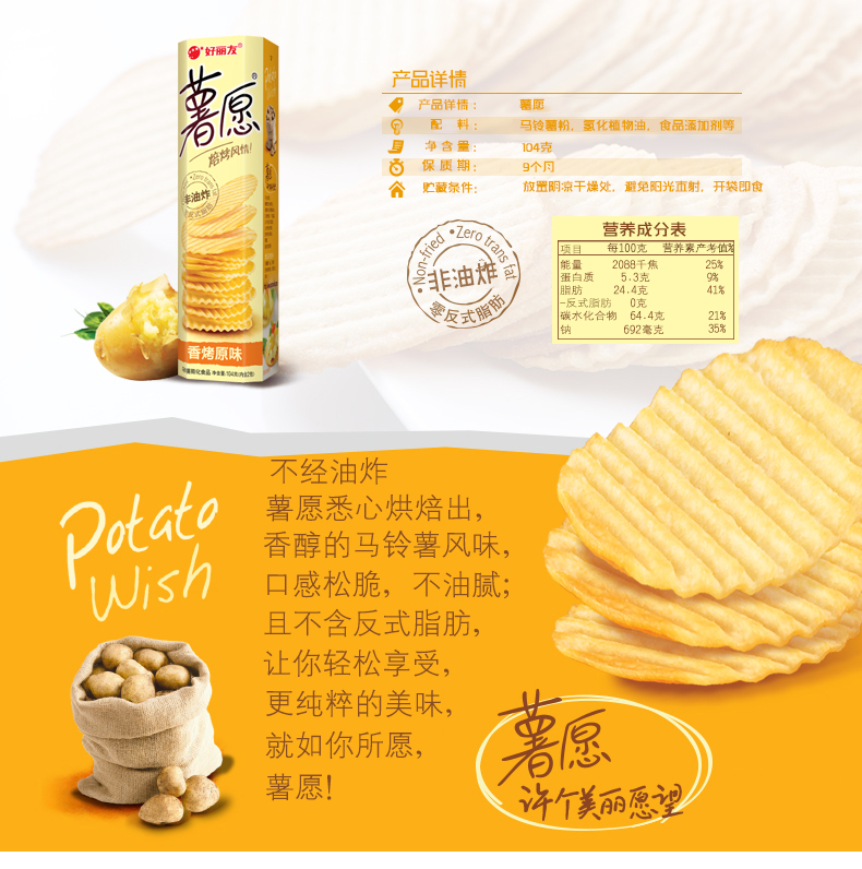 好丽友薯愿104g,非油炸烘烤风情,多种口味可选
